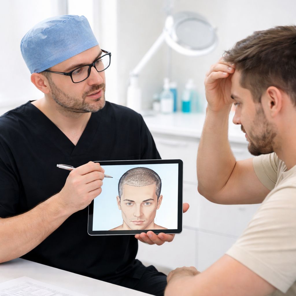 Для FUE обычно требуется короткая стрижка донорской зоны; при локальных работах возможна частичная стрижка. Решение принимает врач исходя из объема и зоны имплантации.