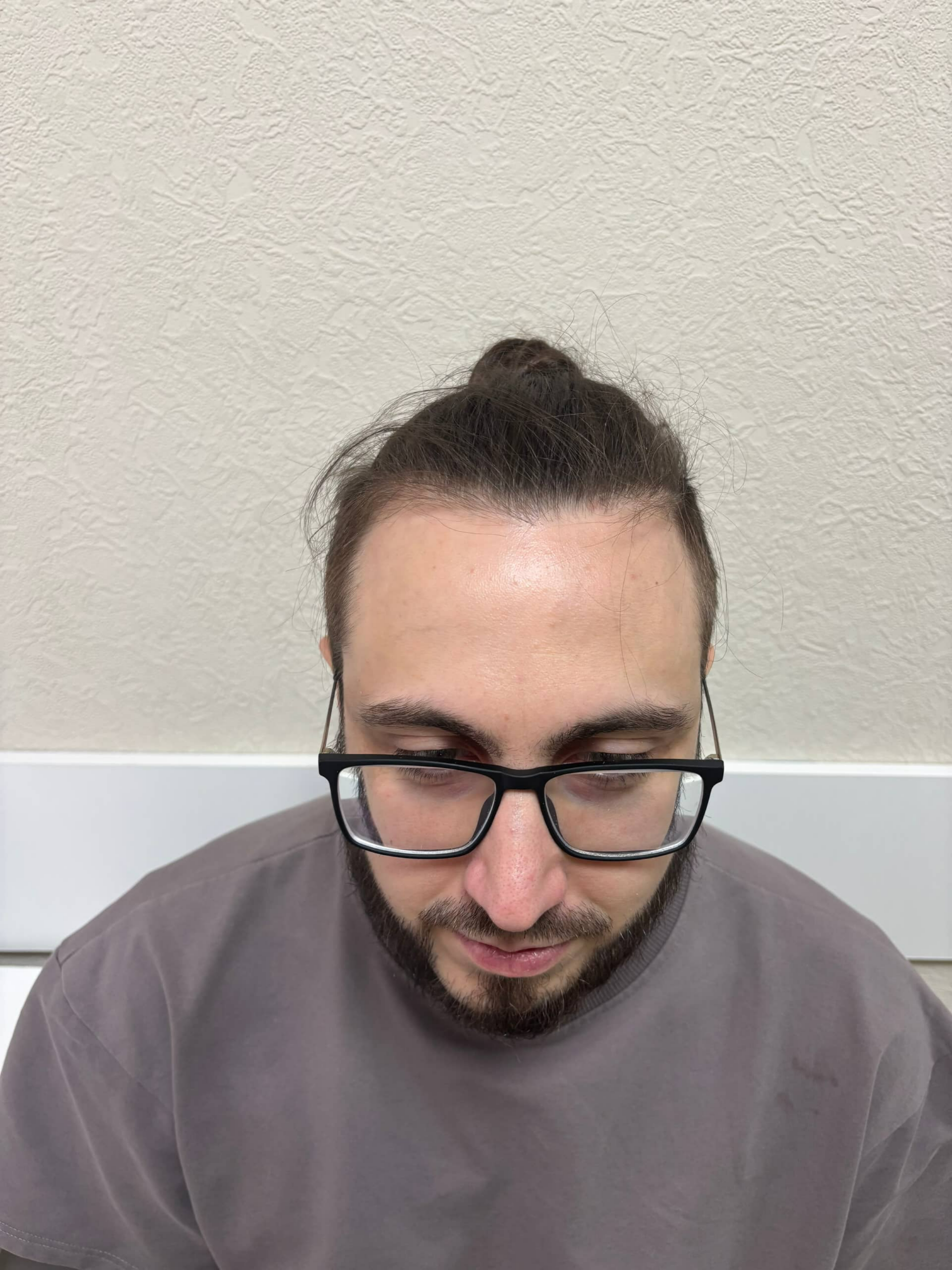 Пациент обратился с жалобами на выраженное поредение волос в лобно-височных зонах и постепенное смещение линии роста волос. Проблема формировалась в течение нескольких лет и стала заметно влиять на внешний вид и уверенность в себе. На момент первичного осмотра наблюдалось истончение и редкий рост волос в передней зоне при сохраненной донорской области.